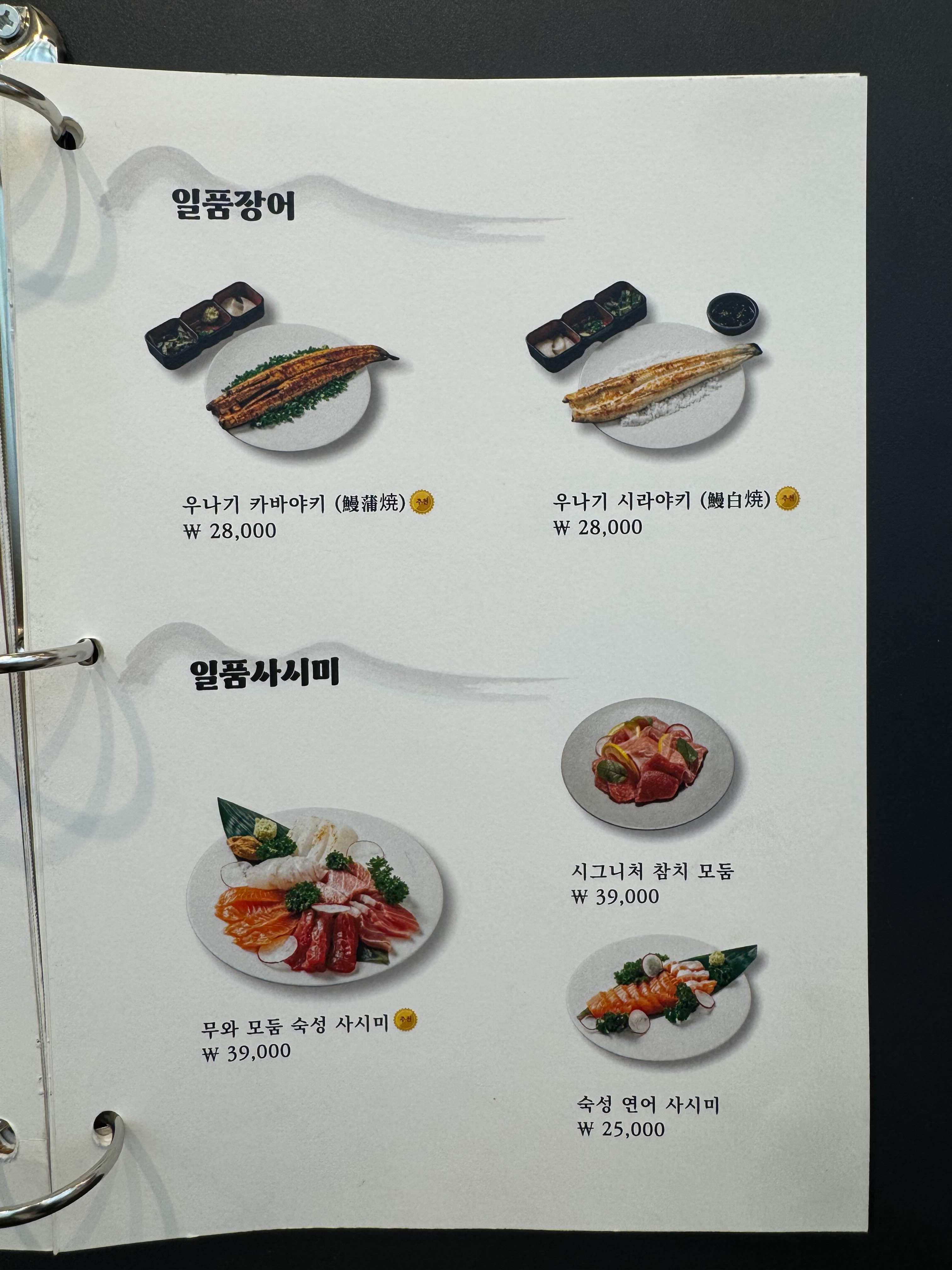 장어와 사시미는 따로 이렇게도 주문할 수 있어요