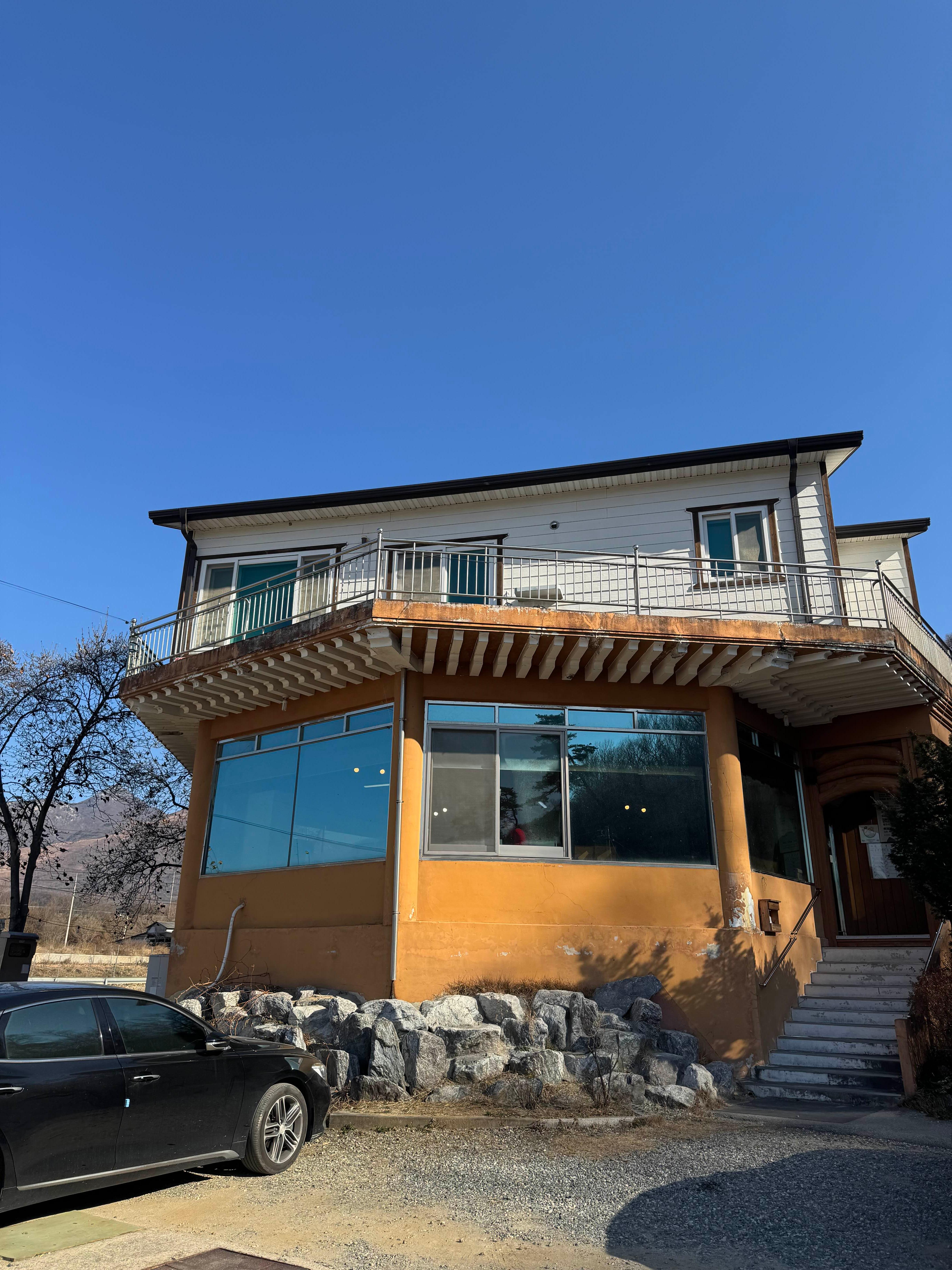 앞 넓은 공간에 주차를 하고